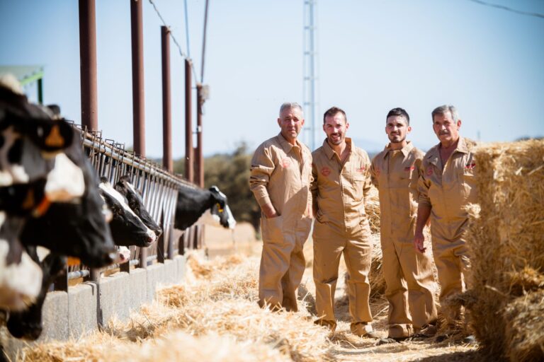 Ganaderos de vacuno de leche, socios de Covap, en una explotación de Los Pedroches.