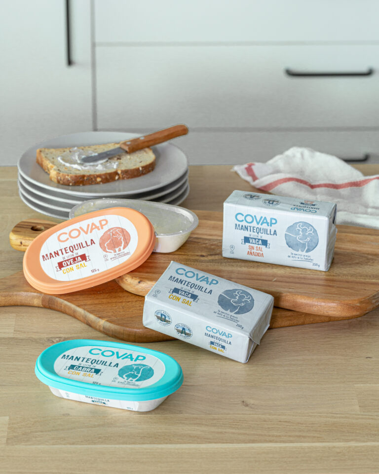 Lácteos COVAP saca al mercado una nueva gama de mantequillas, ricas en vitamina A y elaboradas con leche de vaca, oveja y cabra procedente de 355 granjas seleccionadas de sus ganaderos, lo que les confiere un sabor y aroma característicos.