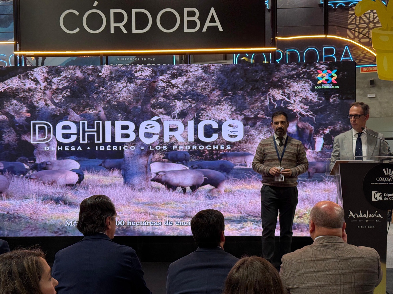 ‘Dehibérico: Dehesa más ibérico igual a Los Pedroches’ es la suma y el resultado de una campaña amparada bajo una marca singular y novedosa con la que se pretende identificar dos de los emblemas que más claramente identifican a esta comarca del norte de la provincia de Córdoba. En esta acción promocional, que se ha presentado esta mañana en la Feria Internacional del Turismo (Fitur), la dehesa y los productos del cerdo ibérico se convierten en el punto de partida de un viaje que recorre paisajes, patrimonio, cultura, medio ambiente y gastronomía.