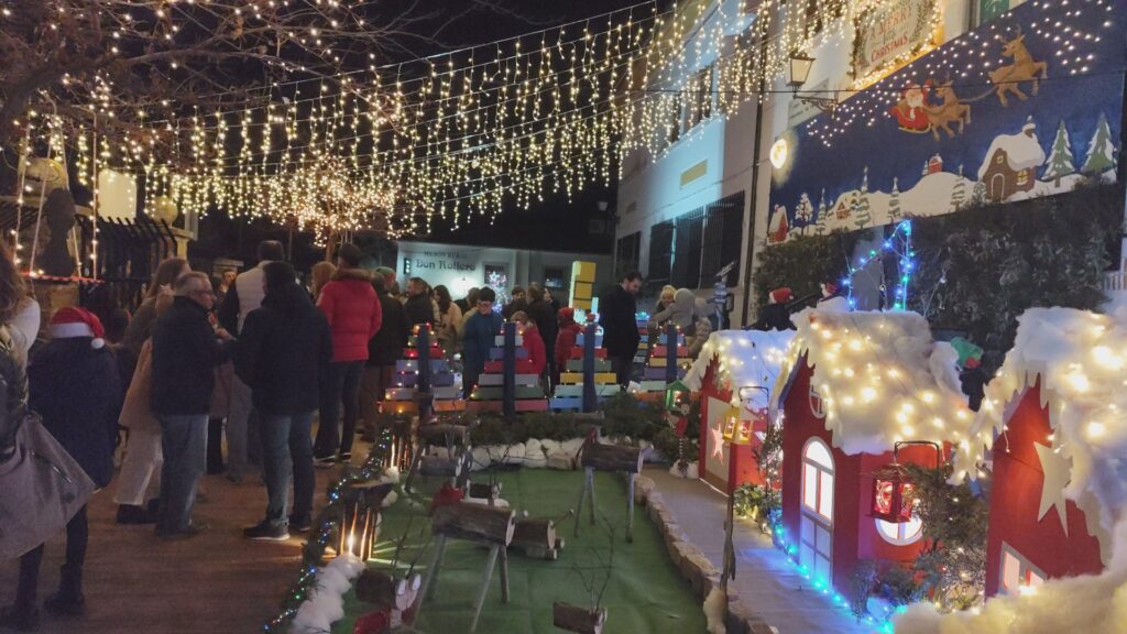 A la derecha del pasillo central nos encontramos “Villa Elfo, el poblado donde viven los elfos, un espacio lleno de encanto que evoca el esfuerzo y la magia de la Navidad. Junto a las casas de los Elfos, nos encontramos el “Corral de los Renos”, unas creaciones de madera muy original que añade un toque divertido y entrañable al conjunto.