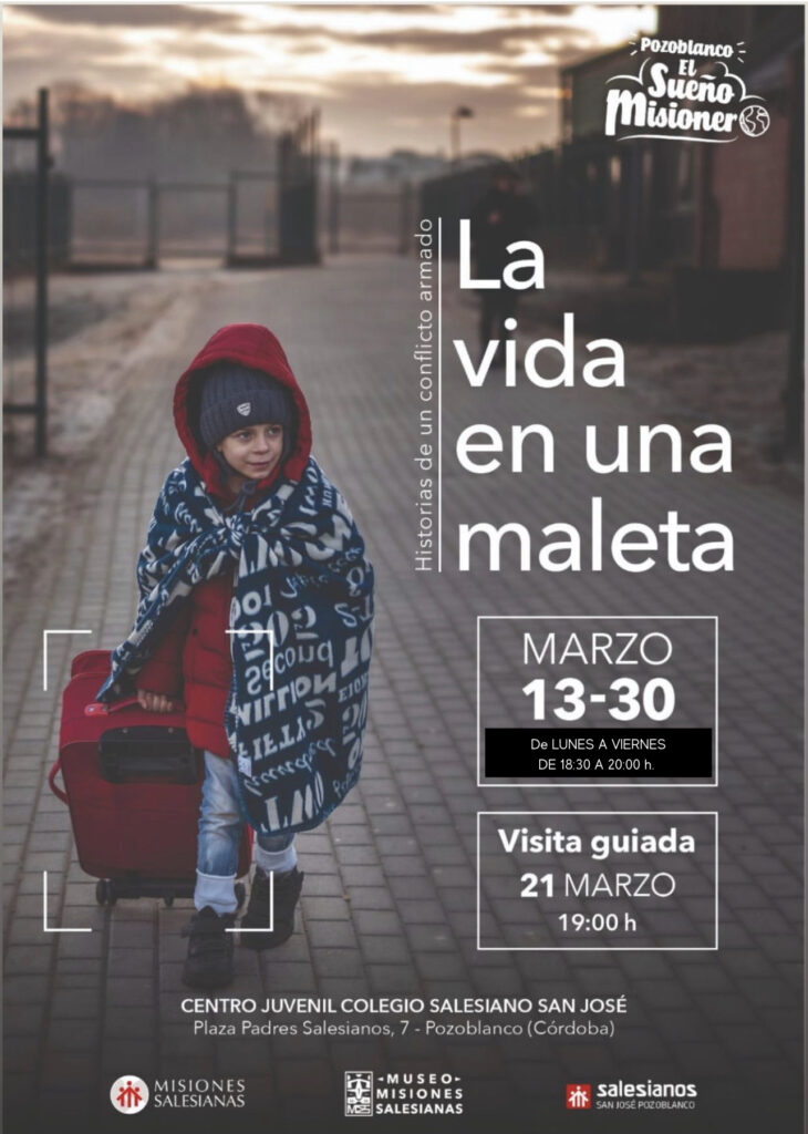 La vida en una maleta: historias de un conflicto armado se abre al público desde hoy lunes, día 13 y permanecerá abierta hasta el día 31 en el Centro Juvenil Magone del Colegio Salesiano San José.