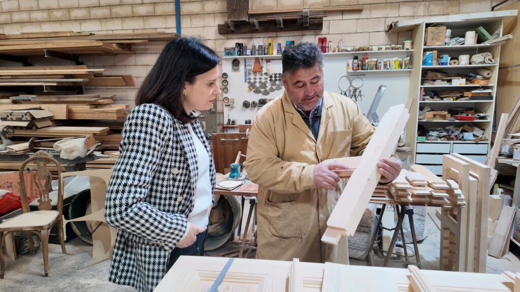 Gálvez ha querido agradecer a Santiago Valverde su trabajo y dedicación y su apuesta por buscar una seña de identidad que le posicione en un mercado cada vez más global, mostrando al mundo sus obras desde este pequeño municipio de Los Pedroches “y para ello son importantes las ayudas que ponemos en marcha, donde ha sido beneficiario este ebanista con casi 11.000 euros”. Se trata, como ha explicado, de incentivos que “persiguen sobre todo apoyar y fomentar un sector clave y necesario en los municipios por su conexión con otras actividades y sectores económicos importantes como la cultura o el turismo, sin olvidar que este sector genera riqueza y empleo además de conseguir mantener población”.