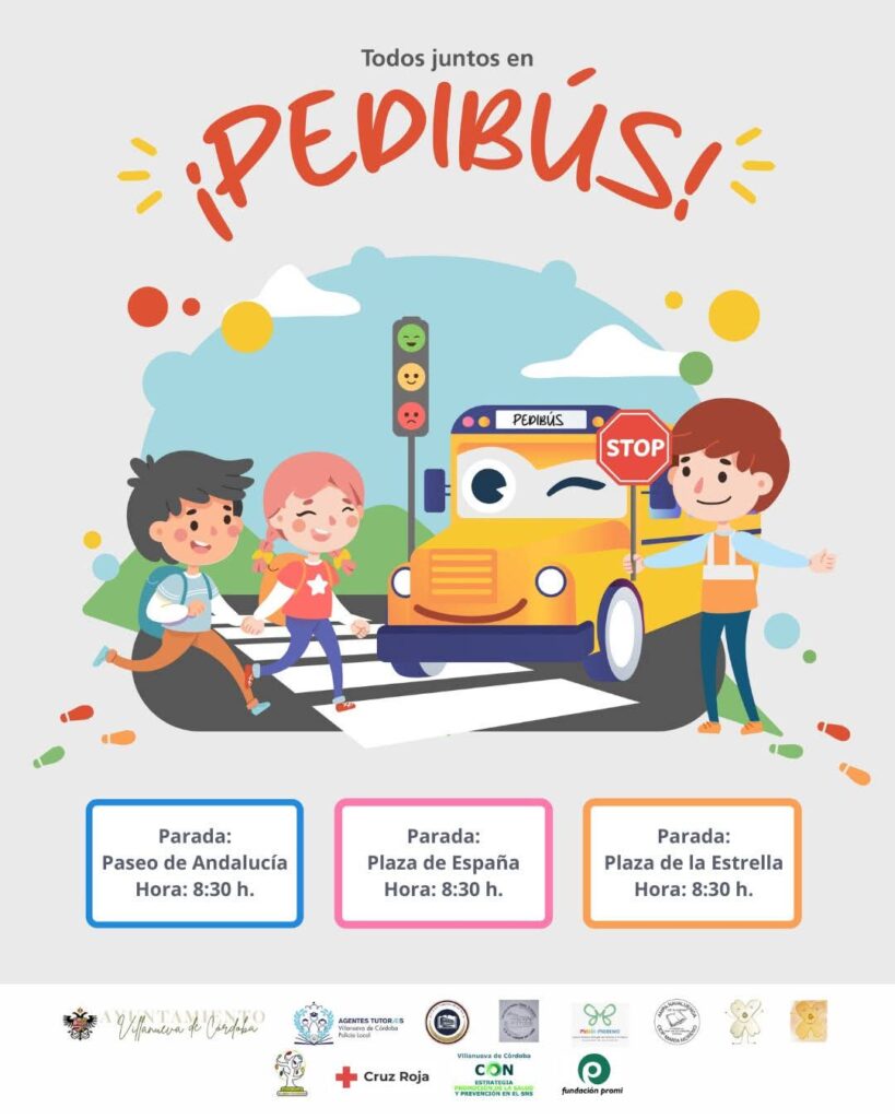 Dentro del programa de Educación Vial se modifica el proyecto Pedibús escolar, el cual se amplía a tres días por semana, este proyecto tiene como objetivo que el máximo del alumnado vaya andando al colegio, mejorando por lo tanto la seguridad en su entorno, al mismo tiempo los participantes obtienen beneficios importantes, como hacer ejercicio físico, iniciar las clases activos, la relación con sus compañeros, el proceso de independencia y autonomía personal y algo muy importante como es conocer otras realidades sociales ya que les permite relacionarse con los voluntarios de Cruz Roja y de PROMI que participan en el proyecto.